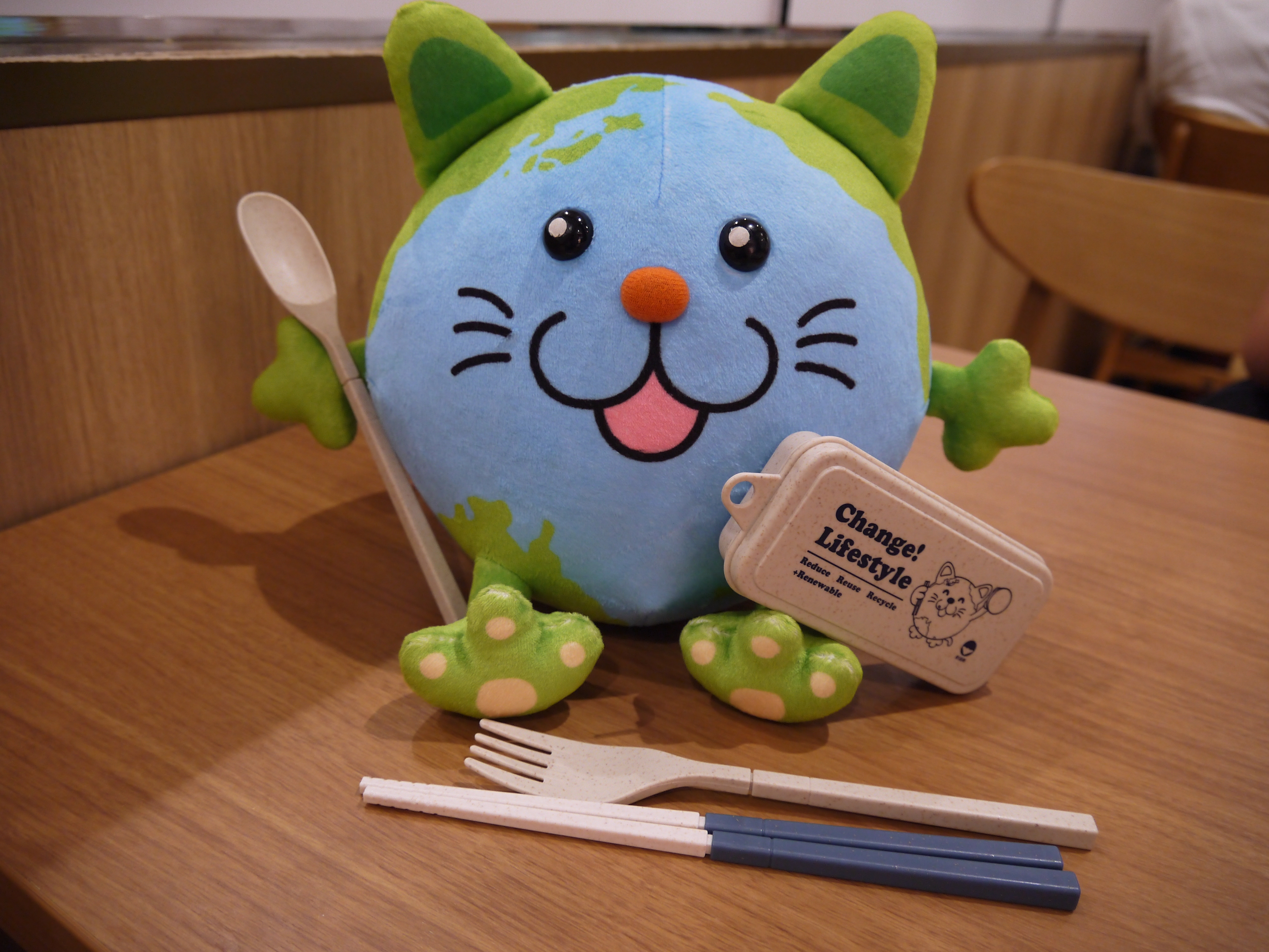 出かけるときは、マイストローやマイカトラリーを持ち歩いているニャン